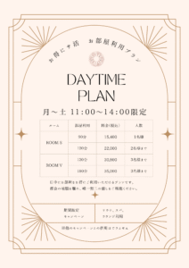 日中にお得に部屋利用ができる、デイタイムプランのご案内です。