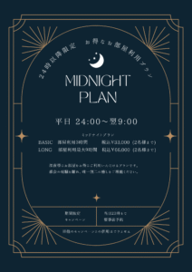 深夜にお得に部屋利用ができる、ミッドナイトプランのご案内です。